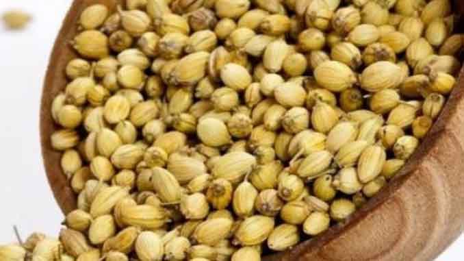 ధనియాలు మెత్తగా నూరి ఆ ముద్దను పంచదారనీటిలో కలిపి అందులో కర్పూరాది సుగంధ ద్రవ్యములను చేర్చి సేవించినట్లయితే పైత్య శమనమును చేస్తుంది.